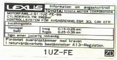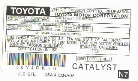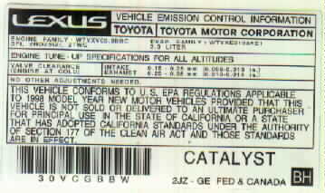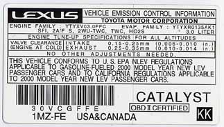 VEHICLE EMISSION CONTROL INFORMATION ラベル